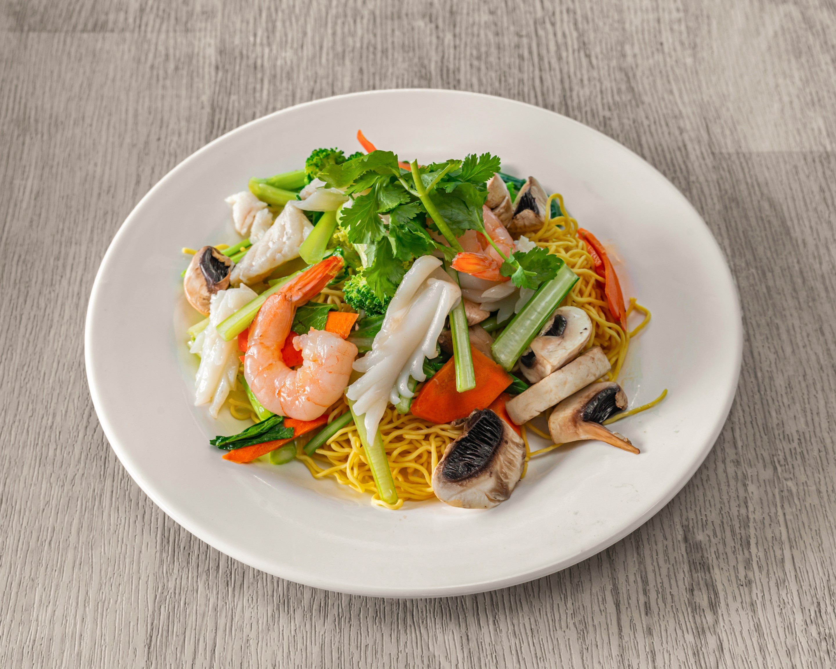 45. Beef/Chicken/Pork Combination (Crispy Fried Egg Noodle)
